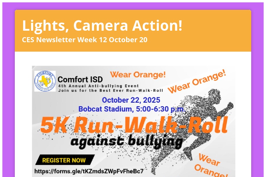 Lights, Camera Action! CES Newsletter Week 12 October 20