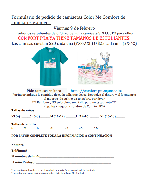 Color Me Comfort Shirts Feb. 9th Deadline